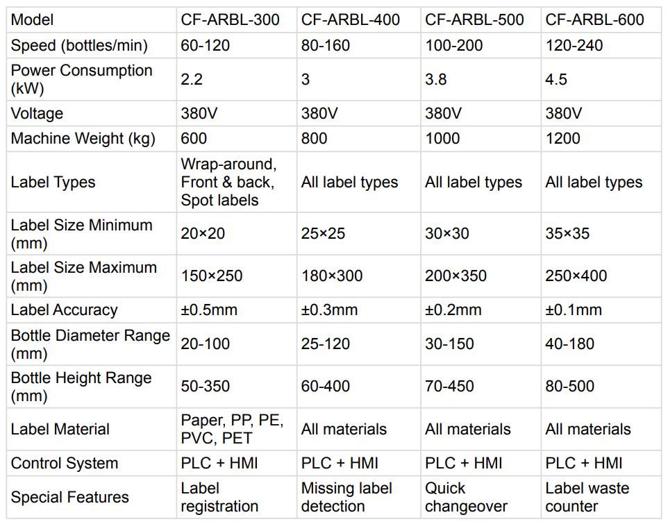 Automatic round bottle labeling machine is a kind of equipment used to automatically paste labels on the surface of cylindrical bottles, which can be labeled with single labels and double labels, and supports full or partial labeling on the circumferential surface, and some models can also realize circumferential positioning and labeling.